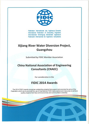 《西江引水項(xiàng)目》獲2014年度FIDIC工程項(xiàng)目提名獎(jiǎng)