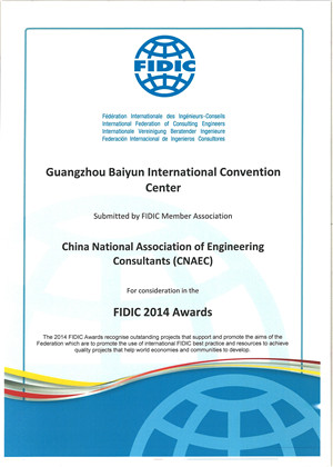 《廣州白云國(guó)際會(huì)議中心項(xiàng)目》獲2014年度FIDIC工程項(xiàng)目提名獎(jiǎng)