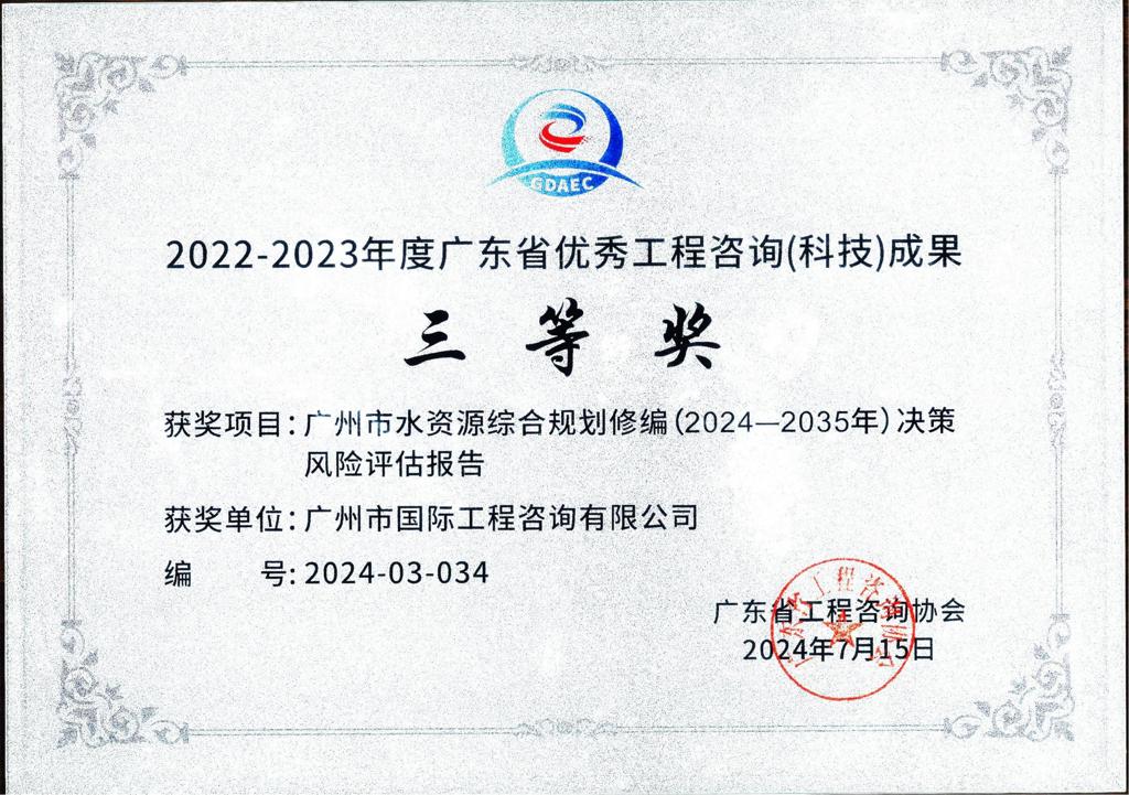 2022-2023年度廣東省優(yōu)秀工程咨詢(科技)成果三等獎(jiǎng)(廣州市水...