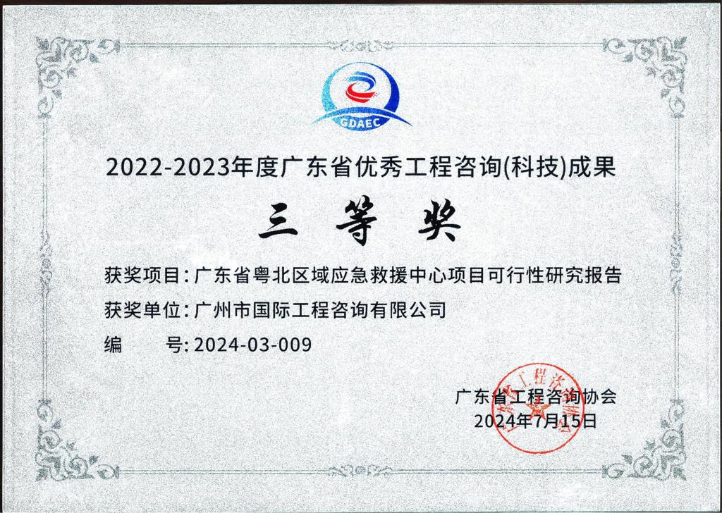 2022-2023年度廣東省優(yōu)秀工程咨詢(科技)成果三等獎(jiǎng)(廣東省粵...