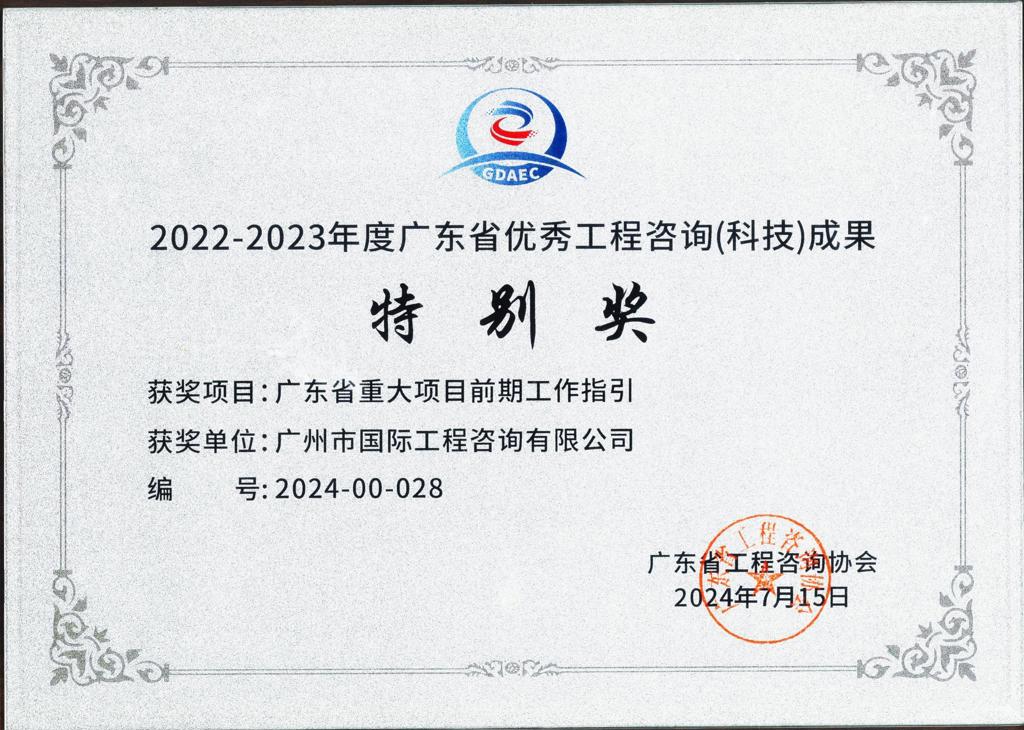 2022-2023年度廣東省優(yōu)秀工程咨詢(科技)成果特別獎(jiǎng)(廣東省重...