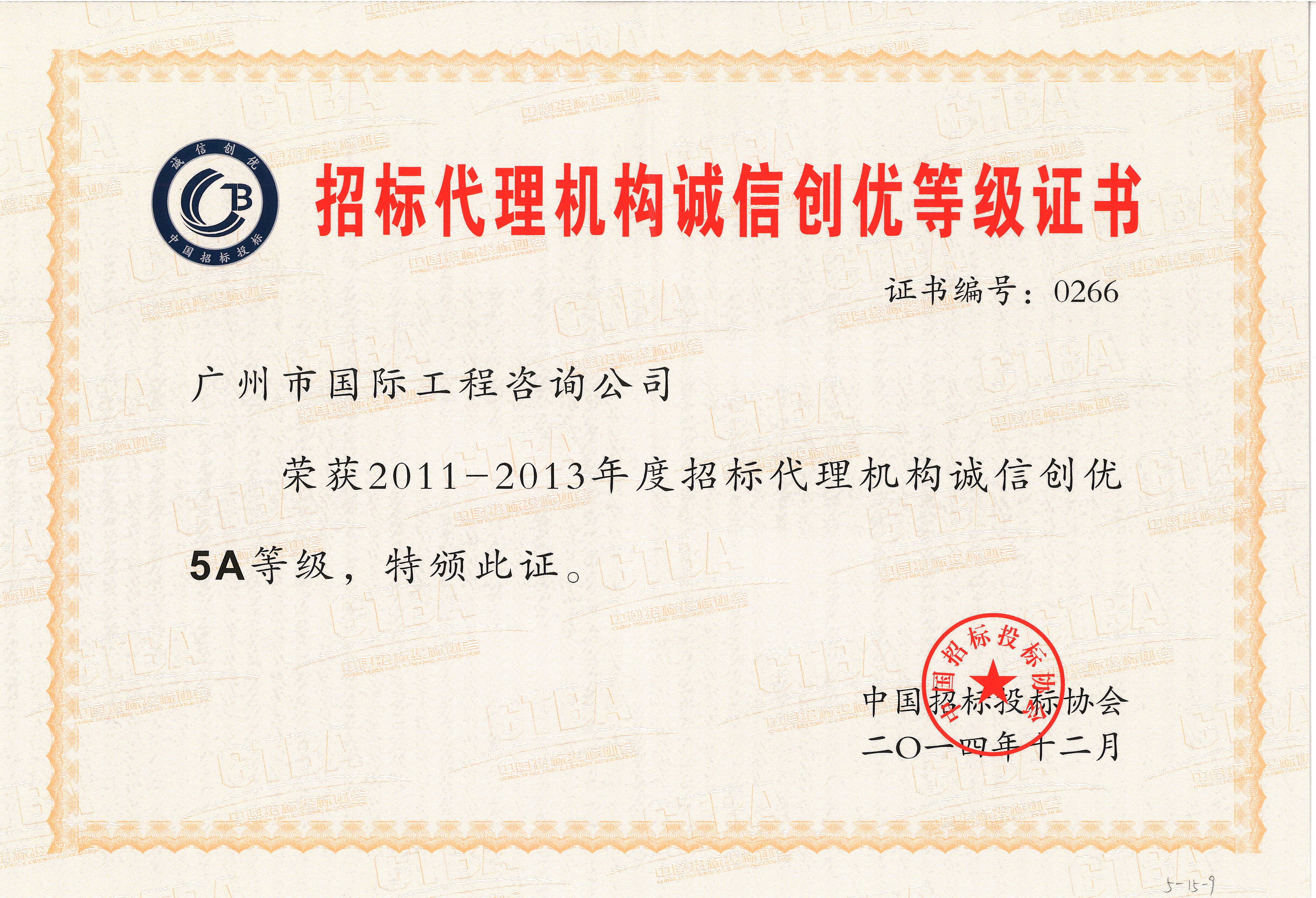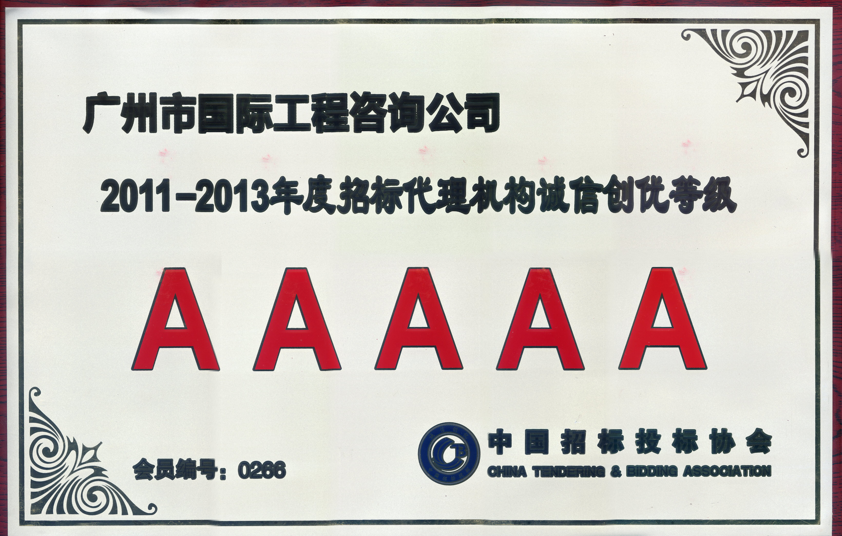 2011-2013年度招標(biāo)代理機(jī)構(gòu)誠(chéng)信創(chuàng)優(yōu)5A等級(jí)