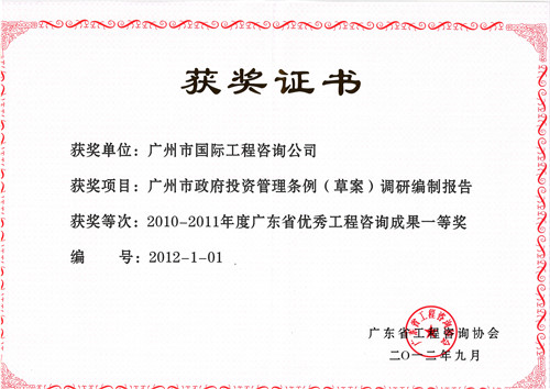2011年度廣東省優(yōu)秀管理咨詢機構