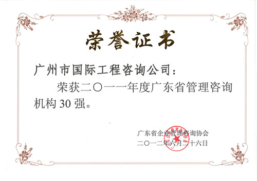 2011年度廣東省企業(yè)管理咨詢協(xié)會30強