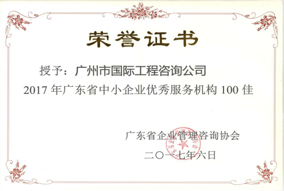 我司榮獲“2016年度廣東省管理咨詢行業(yè)50強(qiáng)(前十強(qiáng))”和“2017廣東省中小企業(yè)優(yōu)秀服務(wù)機(jī)構(gòu)100佳”稱號