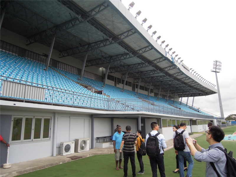 為更好的完成該項目的全過程咨詢服務,我司抽調各部門優(yōu)秀的工程師組成考察組,赴斐濟開展為期15天的可行性研究考察工作。在斐期間,考察組克服了時差、水土不服等困難,積極完成各項工作??疾旖M先后拜訪了中國駐斐濟大使館,聽取了大使館對項目要求與指示;實地踏勘了項目現場,調研斐方相關部門及單位,收集到項目場地現狀、建設條件、建設要求等相關資料;走訪了當地中資企業(yè),了解當地類似項目的實施情況,收集了當地體育場的建設慣例和使用習慣;與斐方積極磋商溝通,對斐方各項需求進行分析,在充分考慮斐濟當地使用習慣和物價水平的基礎上,在投資限額內不斷修訂建設方案。通過考察組不懈努力,順利完成了項目的搜資工作,為后續(xù)可行性研究、設計審查、招標等全過程咨詢工作奠定了扎實基礎。