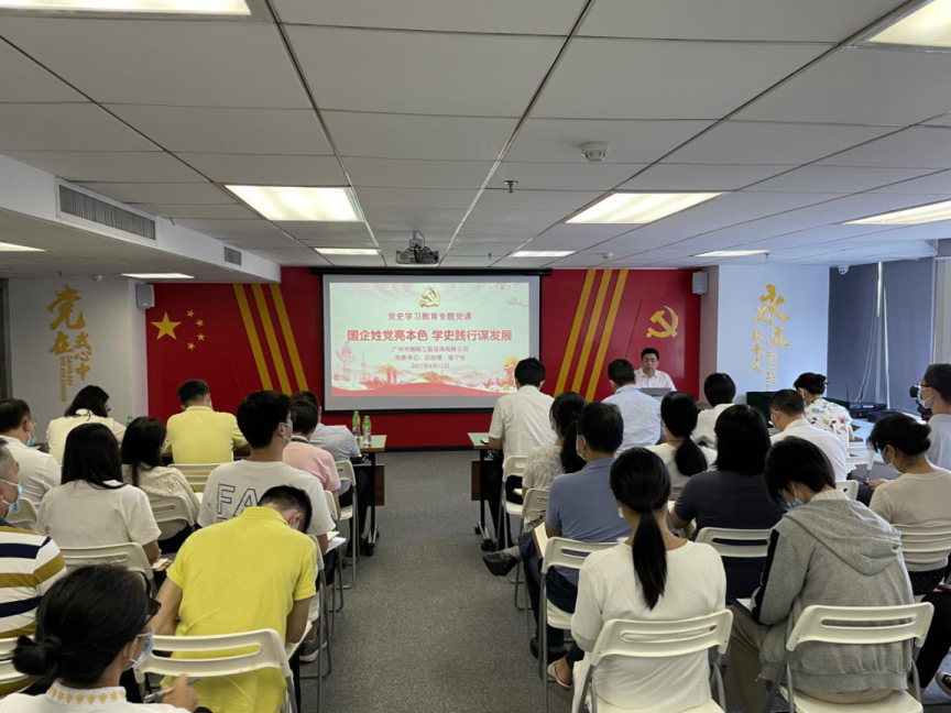 根據(jù)市委黨史學(xué)習(xí)教育領(lǐng)導(dǎo)小組及廣州國發(fā)黨委部署要求,廣州市國際工程咨詢有限公司黨委于8月12日組織召開黨委理論學(xué)習(xí)中心組學(xué)習(xí)會(huì)暨《國企姓黨亮本色 學(xué)史踐行謀發(fā)展》黨史專題黨課,市委黨史學(xué)習(xí)教育第9巡回指導(dǎo)組組員陳佳強(qiáng)同志列席指導(dǎo),公司黨員及非黨員中層干部共38人參加了會(huì)議。