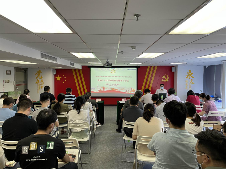 為深入推進(jìn)公司黨史學(xué)習(xí)教育,根據(jù)《公司黨委開(kāi)展黨史學(xué)習(xí)教育暨慶祝建黨100周年系列活動(dòng)工作方案》,6月18日上午,根據(jù)疫情防控要求,廣州市國(guó)際工程咨詢有限公司黨委采取視頻會(huì)議形式召開(kāi)理論學(xué)習(xí)中心組擴(kuò)大會(huì)議開(kāi)展黨的十八大以來(lái)歷史專題學(xué)習(xí),設(shè)1個(gè)主會(huì)場(chǎng)和1個(gè)分會(huì)場(chǎng),實(shí)現(xiàn)了參會(huì)人員不聚集,學(xué)習(xí)教育不耽誤。會(huì)上黨委書(shū)記駱寧安同志講授《十八大以來(lái)的歷史性成績(jī)和變革》黨課,公司全體員工117人參加了學(xué)習(xí)。